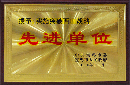 在近日召開的“在全市深入持續(xù)實施突破西山戰(zhàn)略,帶動重點區(qū)域扶貧開發(fā)工作大會”上,因在省扶貧辦組織的“千企千村扶助行動”和市委、市政府“突破西山戰(zhàn)略”工作中成績突出,我公司等八家企業(yè)被評為“實施突破西山戰(zhàn)略”先進單位,受到寶雞市委、市政府的表彰。