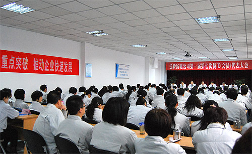 1月23日,紡電公司第一屆第七次員工(會(huì)員)代表大會(huì)在公司第二會(huì)議室召開(kāi),79名員工代表和17名列席代表參加了會(huì)議。長(zhǎng)嶺電氣公司董事長(zhǎng)、黨委書(shū)記、紡電公司董事長(zhǎng)張寶會(huì)參加會(huì)議,并作重要講話。