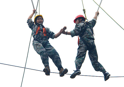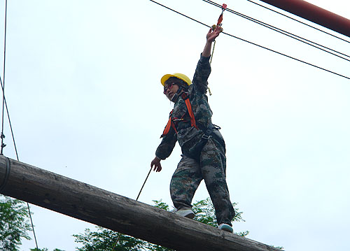 過(guò)高空獨(dú)木橋這個(gè)項(xiàng)目讓我感悟到:1.工作中遇到困難一定要去嘗試克服,有些事情看起來(lái)容易做起來(lái)難,只要勇敢的邁出第一步,困難也不是困難了,其實(shí)只是原先把困難無(wú)限地放大了。