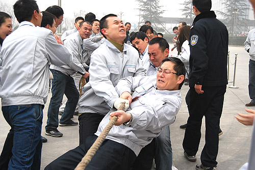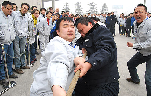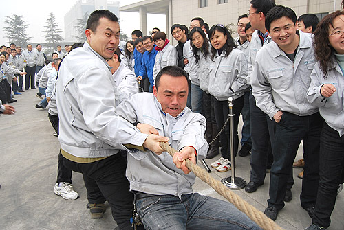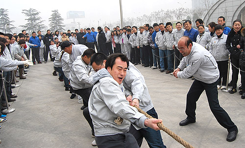 為慶祝農(nóng)歷壬辰年新春佳節(jié)的來臨,2012年1月18日下午,紡電公司在公司園區(qū)內(nèi)開展了“賀新年迎春運(yùn)動會”。紡電公司9個分會、14個部門的200多名員工參加了運(yùn)動會。此次運(yùn)動會設(shè)置了“拔河、集體木屐、跳繩、頂氣球”四個項目。各分會和各參賽單位都認(rèn)真對待,積極組織訓(xùn)練,各行政單位也給予全力支持。運(yùn)動會本著“友誼第一、比賽第二”的原則,賽場上隊員全力以赴、斗志昂揚(yáng),比賽緊張激烈、精彩紛呈,展現(xiàn)了紡電員工的活力和激情。經(jīng)過激烈的角逐,紡研所分會獲得集體木屐、跳繩、頂氣球三項總分第一;質(zhì)管部分會和紡電制造部分會并列第二名。拔河比賽前兩名分別是:紡研所分會和紡電制造部分會。通過比賽,既增強(qiáng)了員工的體質(zhì)、愉悅了身心、鍛煉了意志,也促進(jìn)了員工間的了解與交流,增進(jìn)了友誼,比出了風(fēng)格,賽出了水平。 現(xiàn)場氣氛熱烈,到處充滿了歡聲笑語,吸引了200多位員工到場加油、助威。