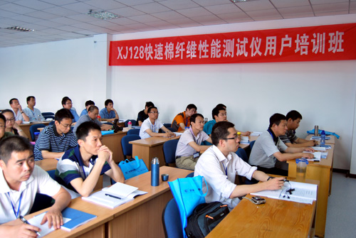 此次培訓是長嶺紡電公司針對“XJ128快速棉纖維性能測試儀”產(chǎn)品舉辦的第一期用戶培訓班。培訓班歷時7天,辦學方式采用理論講授和現(xiàn)場教學相結(jié)合,產(chǎn)品研發(fā)人員與客戶面對面交流,解疑釋惑。從產(chǎn)品測量原理、使用方法、日常維護及故障處理等方面進行詳細的論述。中纖局測試中心張保國主任在開班儀式上要求各位學員通過這次難得的學習機會,與老師、專家充分交流,虛心請教,真正成為國產(chǎn)“HVI”應(yīng)用的行家里手。