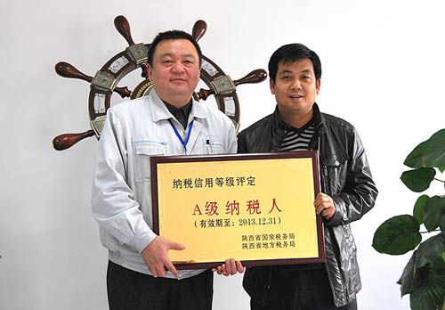 日前,公司被陜西省國家稅務(wù)局和地方稅務(wù)局共同授予“陜西省2012-2013年度納稅信用等級A級納稅人”稱號。紡電公司連續(xù)第三次獲此殊榮。寶雞市國家稅務(wù)局、地方稅務(wù)局有關(guān)領(lǐng)導(dǎo)來我公司親自頒授“納稅信用等級A級納稅人”銅牌。
