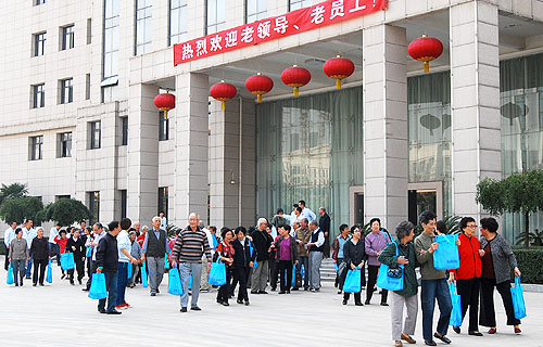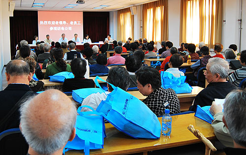 10月12日,紡電公司工業(yè)園迎來了1958年進(jìn)廠的83名老領(lǐng)導(dǎo)老員工。公司在第二會(huì)議室召開了隆重歡迎會(huì),副總經(jīng)理董靜洲、張建輝和中層以上干部參加歡迎會(huì),總經(jīng)理薛冬泉因在外開會(huì),特地為老員工發(fā)來祝福和慰問短信。