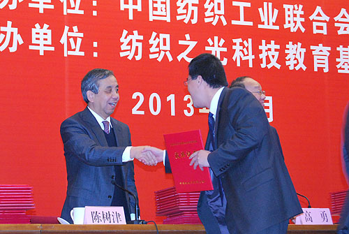表彰會上,中國紡織工業(yè)聯(lián)合會高勇副會長宣布了2013年度中國紡織工業(yè)聯(lián)合會科學技術(shù)獎獲獎名單;副會長孫瑞哲作重要講話,代表中國紡織工業(yè)聯(lián)合會向全體獲獎企業(yè)和人員表示熱烈祝賀,他說,世界經(jīng)濟競爭格局發(fā)生了深刻變化,當前和今后一段時期紡織科技創(chuàng)新與人才培養(yǎng)面臨新的機遇與挑戰(zhàn),希望全行業(yè)滿懷信心,把握大勢,塑造紡織科技創(chuàng)新與人才培養(yǎng)新優(yōu)勢。