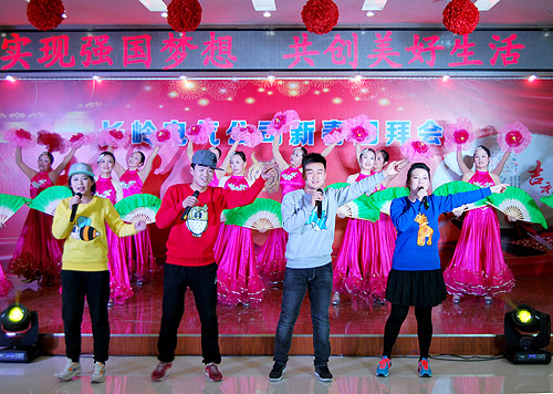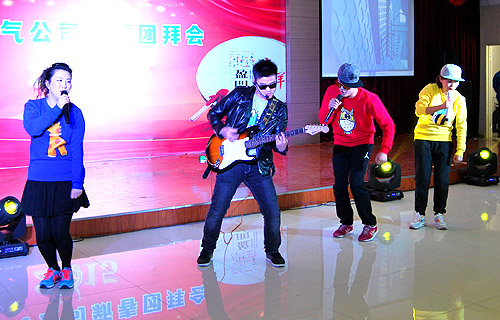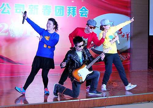 2015年2月16日,農歷乙未春節(jié)來臨之際,紡電公司參加了電氣公司春節(jié)團拜會。我公司小合唱節(jié)目《超級英雄》氣氛熱烈,充滿朝氣,獲得一致點贊,由于他們的精彩表現(xiàn),還被現(xiàn)場特邀參加了謝幕節(jié)目的演唱。4個年輕人的現(xiàn)場表演精彩不斷,她們憑借扎實的唱功和豐富的舞臺經(jīng)驗,以自身獨特的視角,抒發(fā)了對生活的熱愛之情。尤其是封宇冬的電吉它演奏,充分體現(xiàn)了年輕人熱愛生活、向往自由的生活方式,增強了演出效果,烘托了舞臺氣氛,渲染了濃烈的節(jié)日氣氛,送去了溫馨的節(jié)日祝福,贏得了現(xiàn)場觀眾的陣陣掌聲。