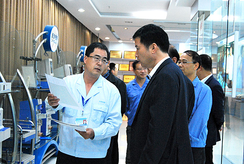 陜西長嶺電氣有限責(zé)任公司董事長張寶會、紡電公司董事長魏新華、總經(jīng)理雷濤等公司領(lǐng)導(dǎo)陪同錢引安市長參觀了公司產(chǎn)品陳列室、觀看了紡電專題片,參觀了紡研所產(chǎn)品實驗室。電氣公司董事長張寶會就紡電公司的基本情況,近年來在優(yōu)化產(chǎn)品結(jié)構(gòu)、提高技術(shù)創(chuàng)新能力等方面的情況進(jìn)行了重點介紹。